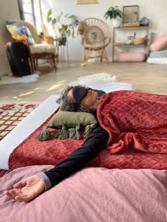 Korte tijd later is het zo ver. Ik lig bij Sanne op het zachte bedje midden in haar mooie ruimte. Sanne begeleidt, is ‘spaceholder’ en zorgt voor een veilige energie om te kunnen laten gebeuren wat er gebeuren wil. Ik stel me open, ervaar en vertrouw – dit alles met een gezonde spanning. Voorafgaand aan de sessie wisselen we nog wat uit en drinken een kopje Blauwe Lotus thee. Sanne legt me uit wat ik ongeveer kan verwachten en hoe de sessie is opgebouwd. Ze benadrukt dat het veilig is en dat ik altijd zeggenschap houd over wat ik wel of niet wil doen. “Bedenk wel dat een bepaalde mate van overgave je zal helpen om datgene te kunnen ervaren wat jou het meest zal helpen. Als je vanuit angst de contrôle wilt behouden, kan dat uitlopen op een gemiste kans.” Die woorden knoop ik in mijn oren. Mijn intentie is om het voor mij hoogst haalbare te ervaren, daarom had ik die ‘ja’ zo duidelijk gevoeld. Overgave met behoud van eigen regie, dat moet toch mogelijk zijn.